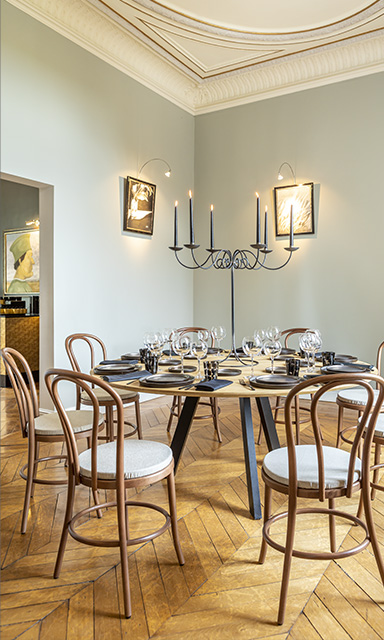 Associé avec le plateau bois de la table, le design en bois arrondi de la chaise Bistrot apporte une touche moderne à l’ensemble.