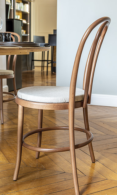 Chaise Bistrot teinte noyer avec galette lin ficelle