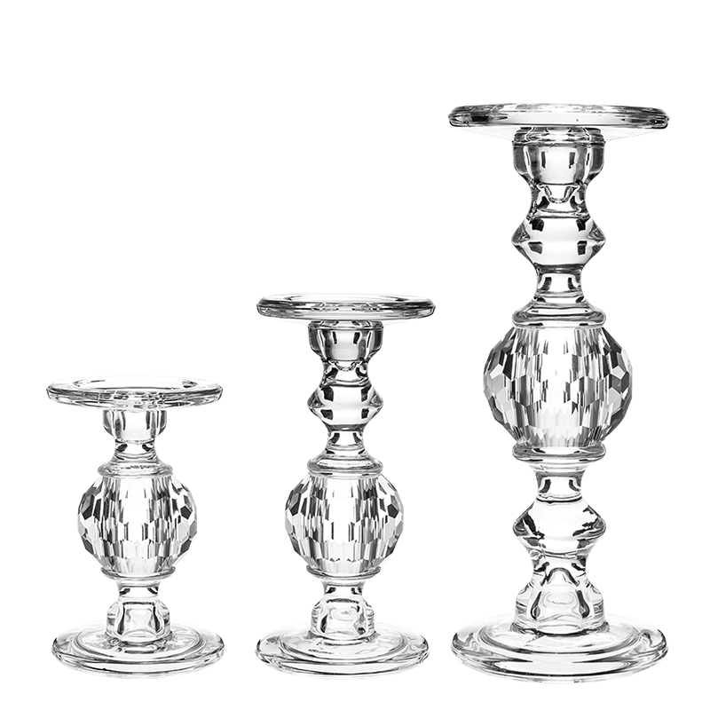 Lot de 3 bougeoirs en verre H 22 cm - 29,9 cm - 34,5 cm