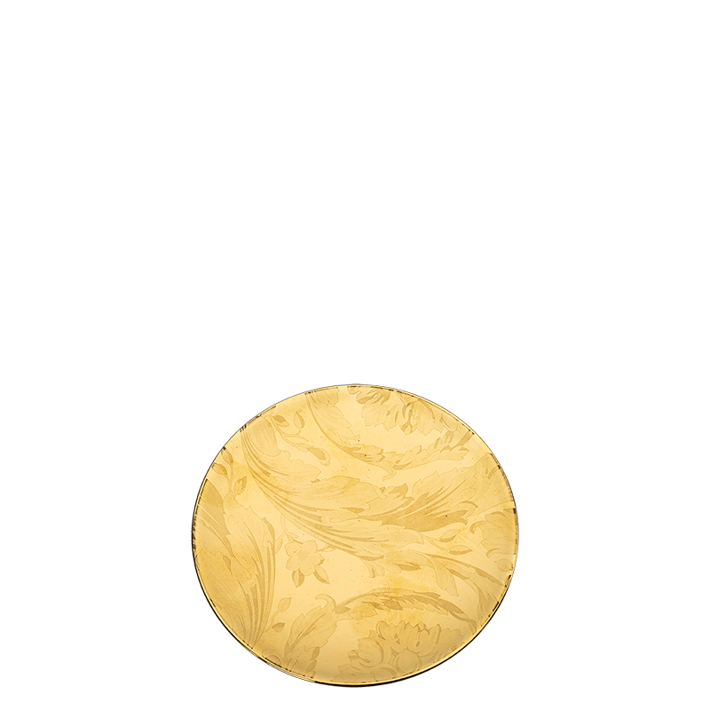 Cette assiette à pain Versace toute dorée avec des motifs baroques donnera une touche d'exclusivité à votre table.