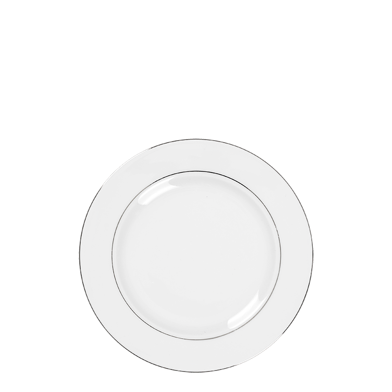 Vaisselle en porcelaine blanche liseret argenté sur le rebord