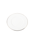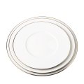Cette ligne d'assiettes en porcelaine blanche avec filet permet de dresser une table sobre et élégante, dans les tons blanc et or.