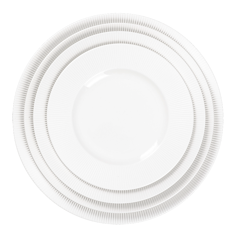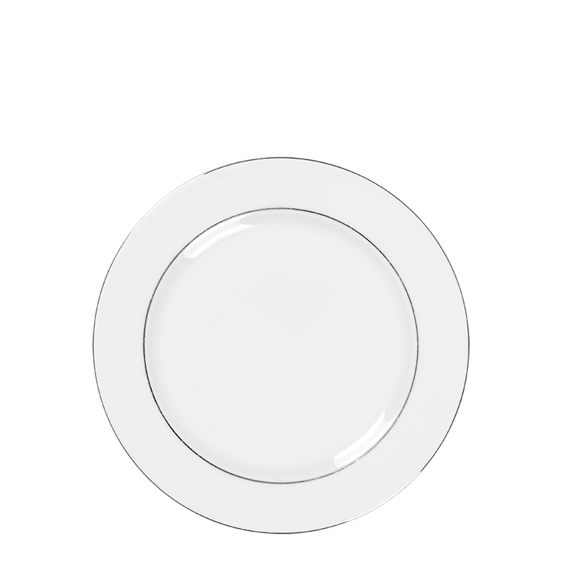 Vaisselle en porcelaine blanche liseret argenté sur le rebord