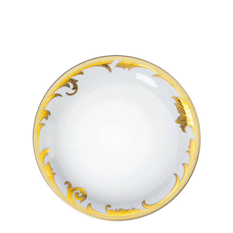 L'assiette plate Versace blanche avec ses bords dorés embellira votre table.