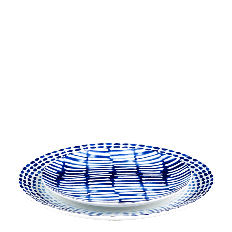 Gamme :La ligne Andalouse se compose d'une assiette plate et d'assiettes lunch aux décors dépareillés. Idéale pour dresser une table moderne et pleine d'originalité, cette ligne aux motifs bleus s'accorde avec le nappage blanc et les couverts bois.