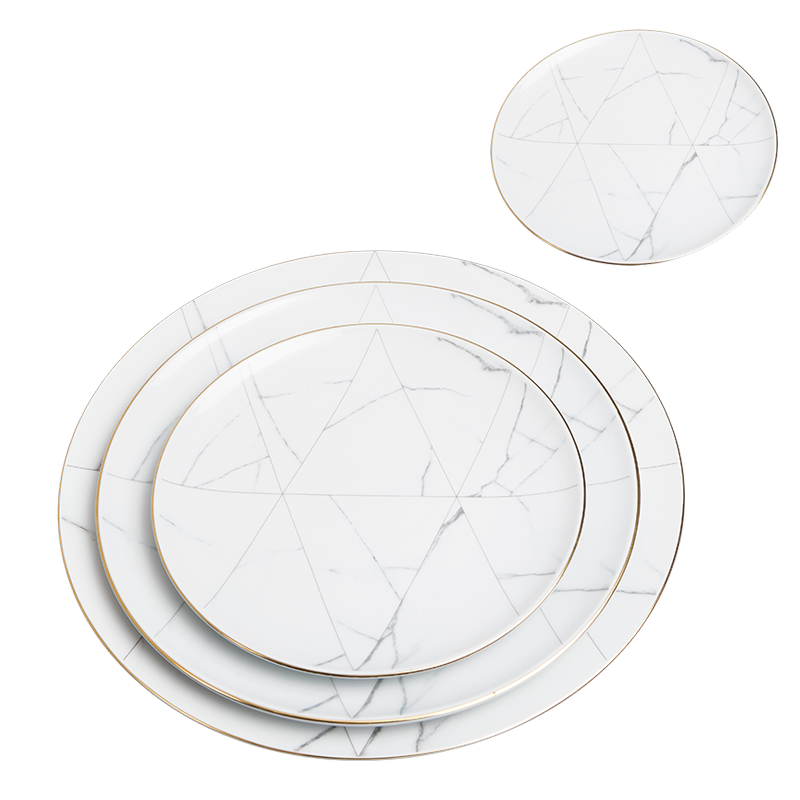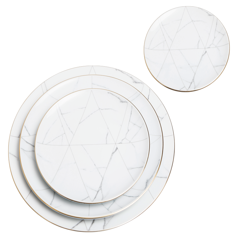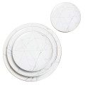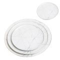 Gamme :Découvrez cette ligne d’assiettes en porcelaine avec un décor effet marbre, à la pointe des tendances. Ornées d’un filet or à l’extrémité et structurées par de fines lignes grises, ces assiettes ajouteront une touche d’originalité à votre événement.