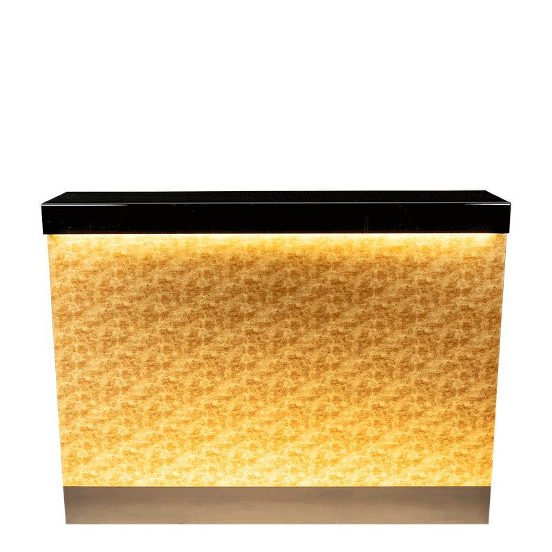 Le bar Mandarin est pourvu d'une barre LED lumineuse sur la façade, sous le plateau noir.