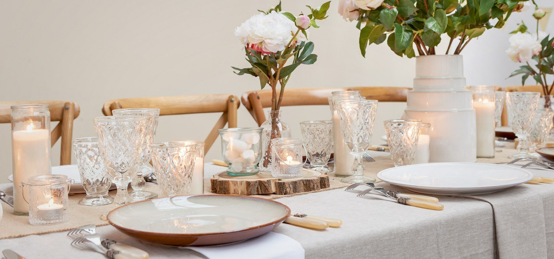 Que le repas du baptême ait lieu à votre domicile ou dans une salle de réception, il va falloir décorer la table. Afin d’éviter d’avoir beaucoup à faire le jour-j, essayez de vous organiser à l’avance. C’est la clé pour qu’une réception se déroule paisiblement. Dans l’idéal toute la déco doit être prête quelques jours avant. Vous recherchez des idées ? Découvrez quelques visuels d'inspirations. Côté préparatifs, plusieurs options s’offrent à vous : achetez des accessoires ou réalisez-les vous-même. Pourquoi ne pas organiser un atelier DIY ? En termes de vaisselle, si vous souhaitez dresser un couvert différent, louez des assiettes et des verres pour l’occasion. Vous trouverez une belle sélection sur notre site web Options.