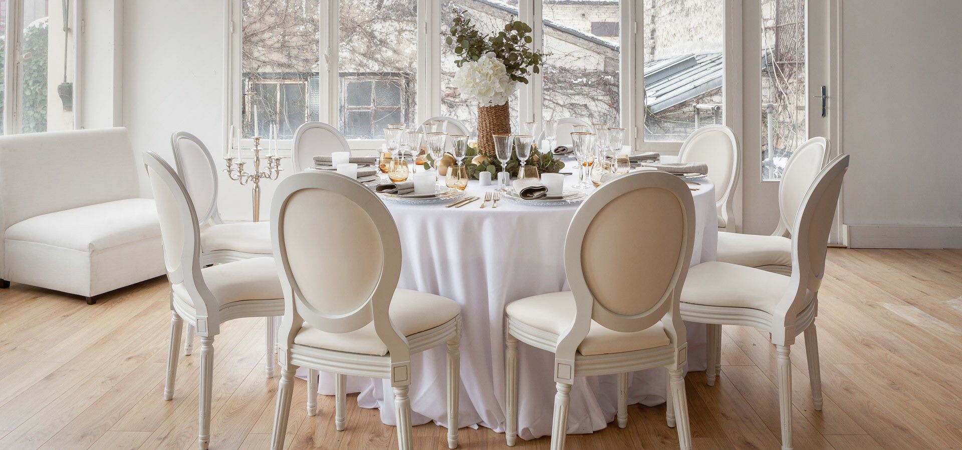 Le challenge : dresser des tables avec de la vaisselle moderne (adaptée au menu traiteur) dans un décor classique. La volonté de votre client est de s’intégrer pleinement à l’atmosphère de cette salle. Dans cet article de blog, on vous livre quelques astuces pour habiller le mobilier de façon élégante.