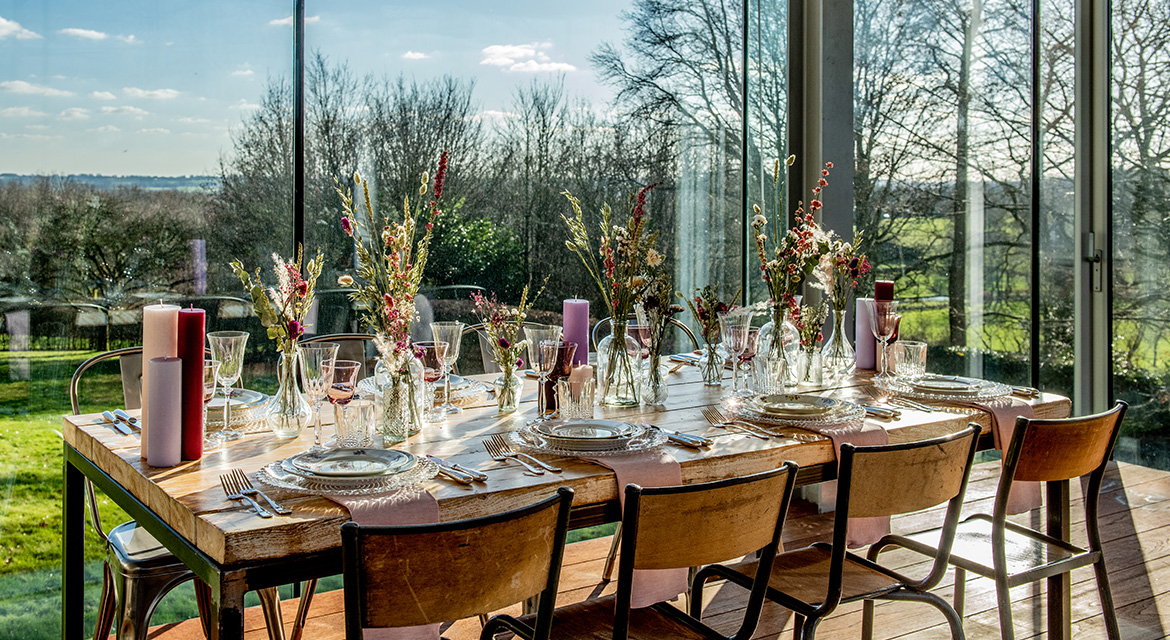 Conseil Options Luxembourg : Jouez sur les hauteurs et les matières : combinez nappes fluides, verrerie fine et compositions florales aériennes pour créer une table visuellement équilibrée.