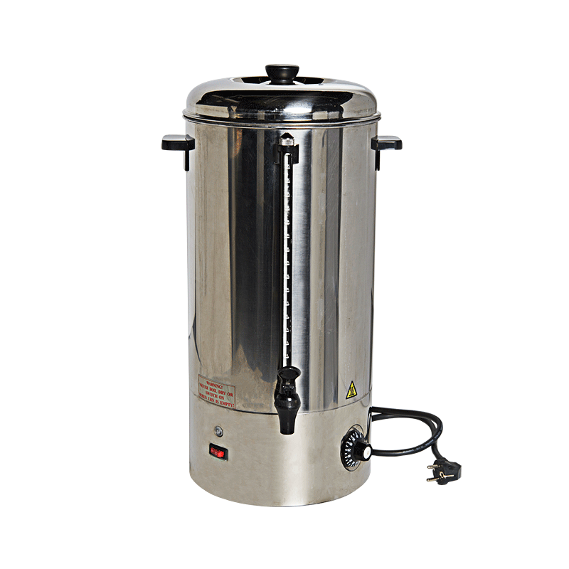 Bouilleur en acier inoxydable - Convient pour une utilisation avec de l'eau, vin, etc. - Thermostat de 30° à 110° - Robinet verseur - Temps d'ébulition: 50min.