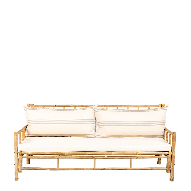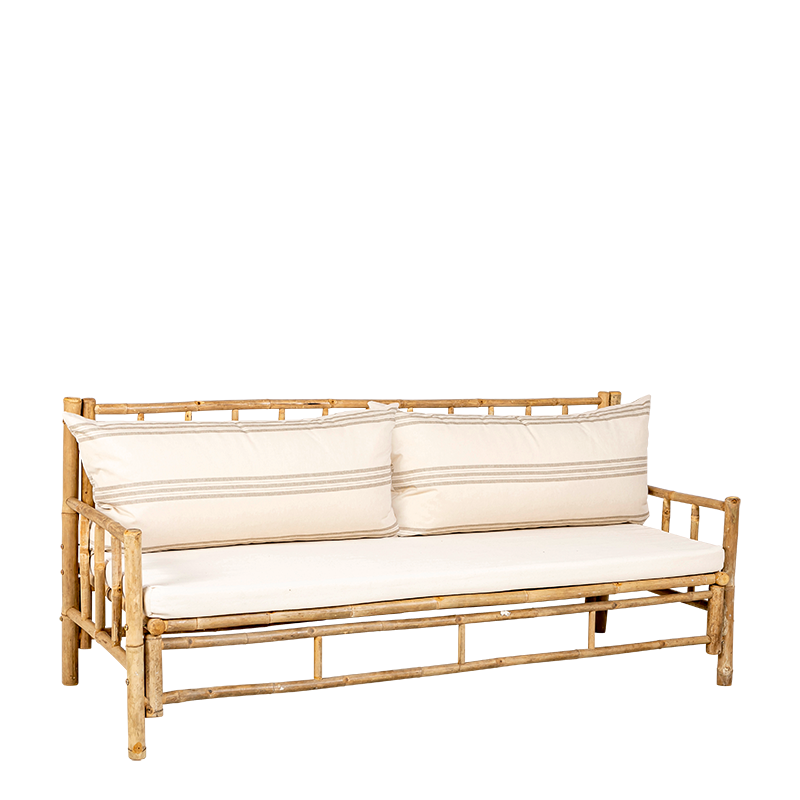 L'exotisme s'invite dans le mobilier de réception avec le Canapé rayé gris Bali. Pour offrir un grand confort, ce canapé en bambou se compose d’un coussin d’assise et 2 coussins de dossier. Pour harmoniser votre salon lounge, ce mobilier intérieur comme extérieur peut se compléter avec le fauteuil, le pouf et la table basse Bali.