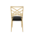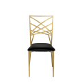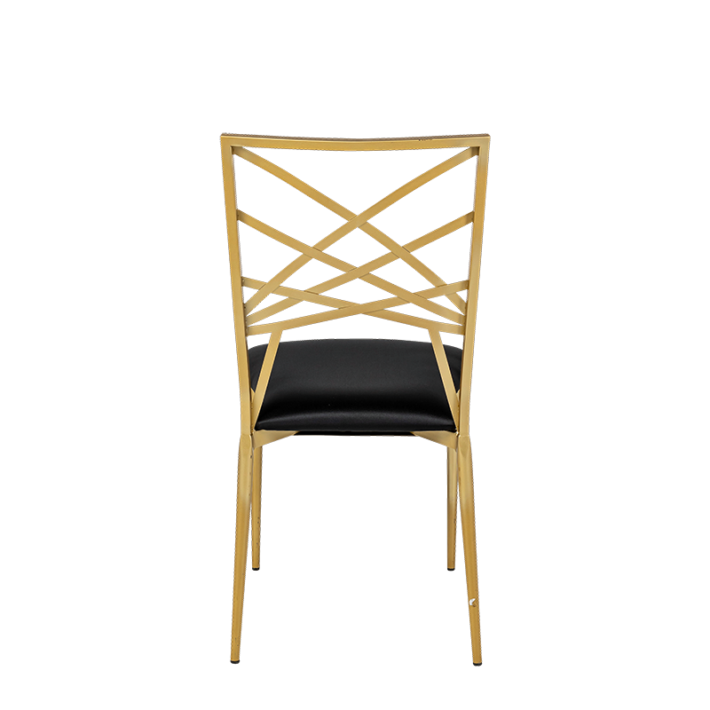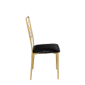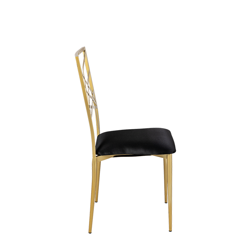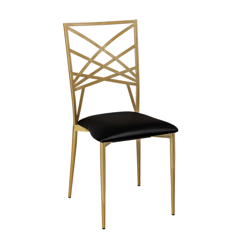 Jolies chaises dorées avec assise noire dont le dossier ajouré et stylisé viendra ajouter une touche d'originalité et de romantisme. Découvrez également la chaise Berverly avec une assise crème. Ce produit est classé au feu et possède un certificat d’ignifugation. Contactez-nous pour plus d’informations.