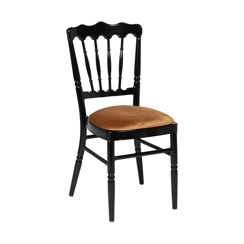 La chaise Napoléon noire en aluminium, une invitation au raffinement et à l'élégance pour vos événements.