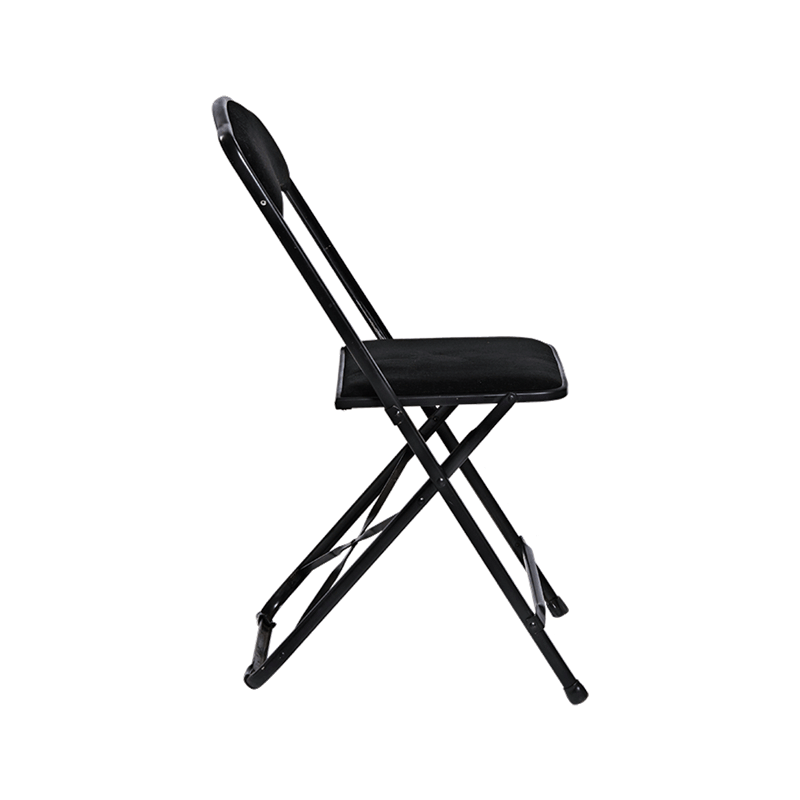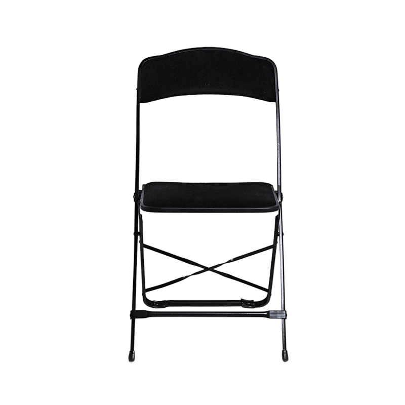 Chaise pliante - Assise et dossier en velour noir - Armature noire