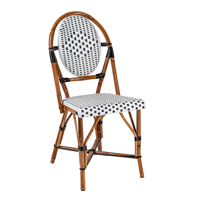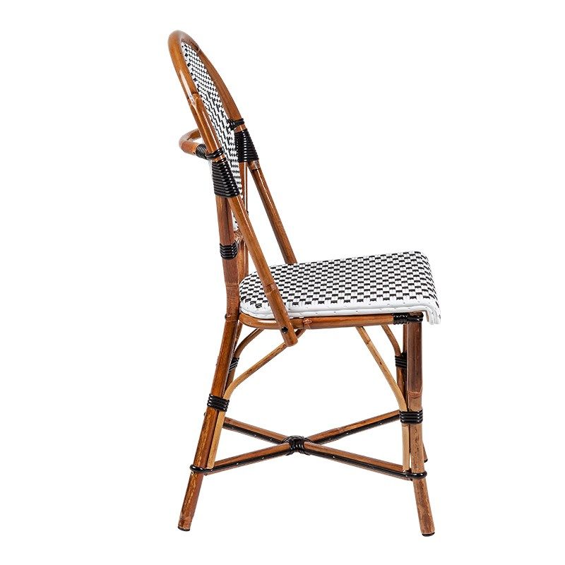 Jouez l'esprit bistrot pour toujours plus de convivialité ! La chaise tressée noire et blanche reprend les codes authentiques de ce style avec un motif damier noir et blanc, un cadre au bois verni et un look rétro. A utiliser aussi bien en extérieur qu'en intérieur, cette chaise accompagne parfaitement la table bistrot.