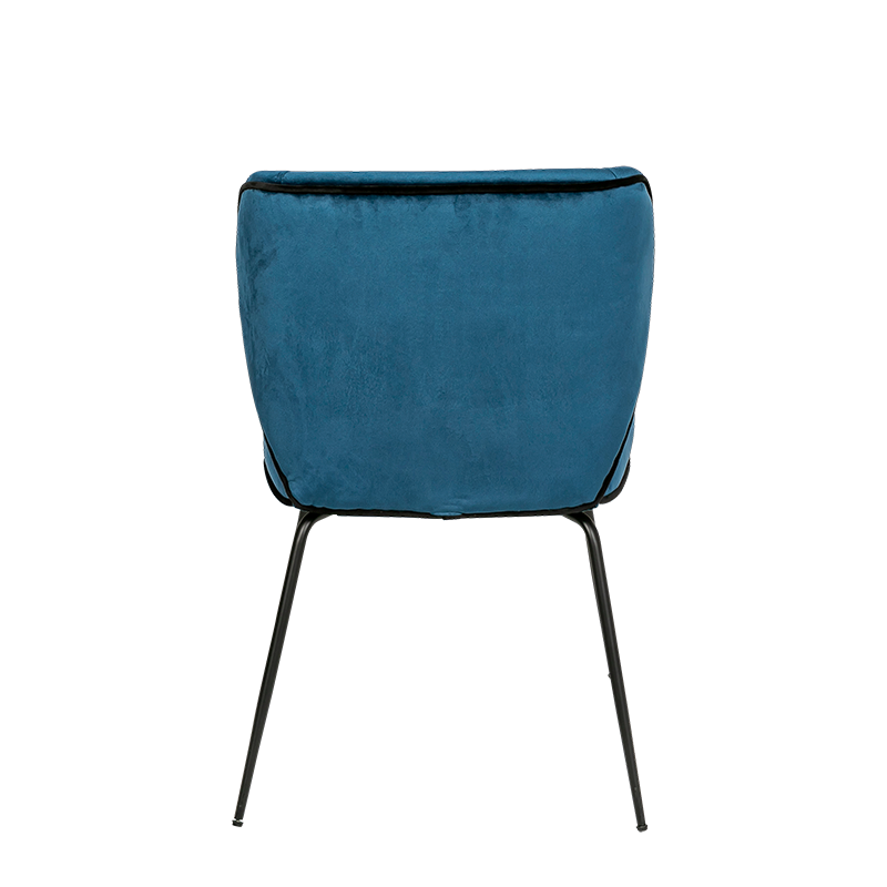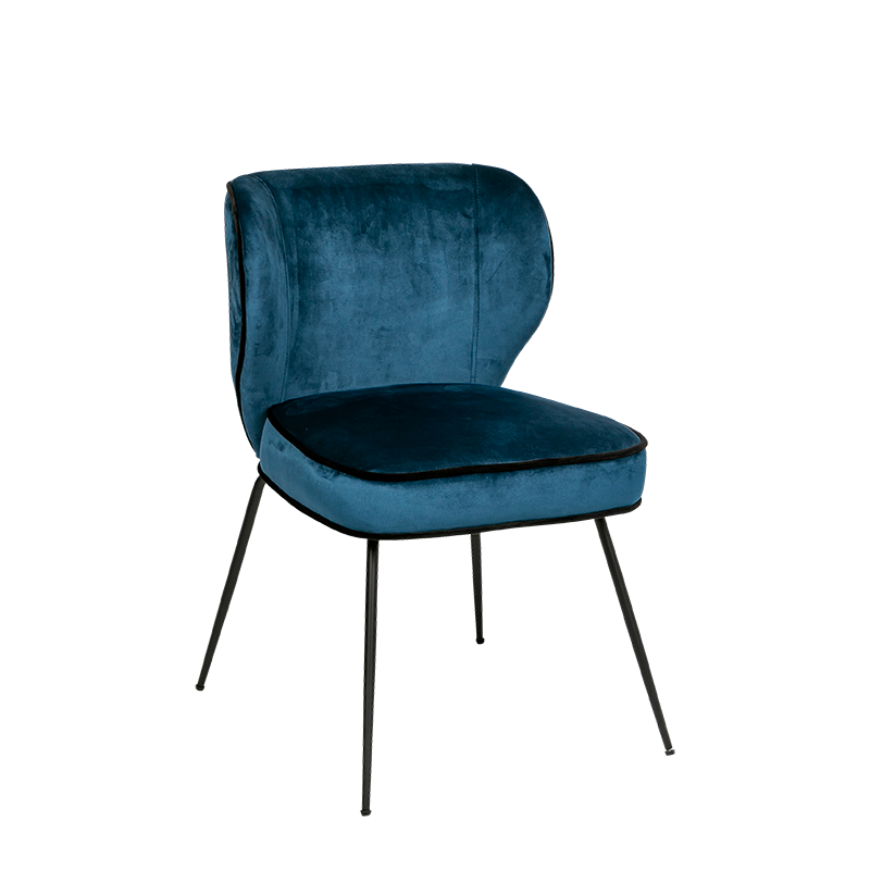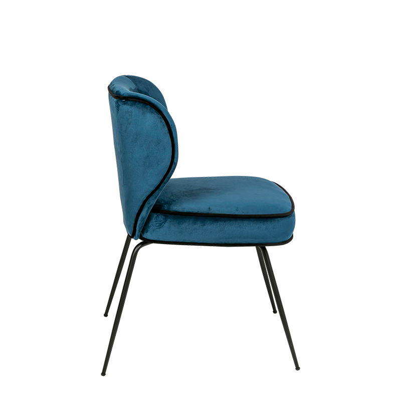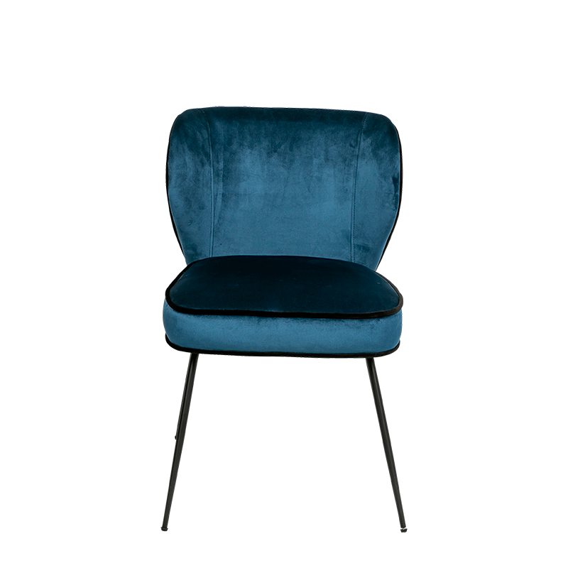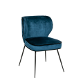 La chaise Dandy bleue en velours convient aussi bien pour un dîner que pour un espace lounge. Son dossier et son assise vous assurent un véritable confort. Les pieds fins métalliques lui donnent un style épuré et élégant.