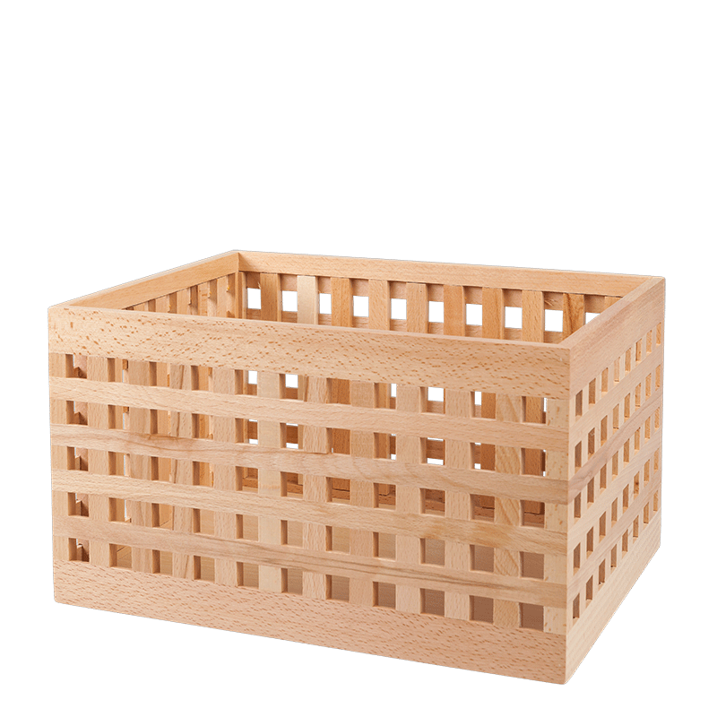 Disposez vos pains et viennoiseries dans cette haute corbeille rectangulaire en hêtre. Idéale pour un buffet petit déjeuner ou cocktail pour un poste fromages. Dimensions: 34 x 26 cm H 20 cm Retrouvez également cette corbeille incluse dans le Poste à pain Polo.