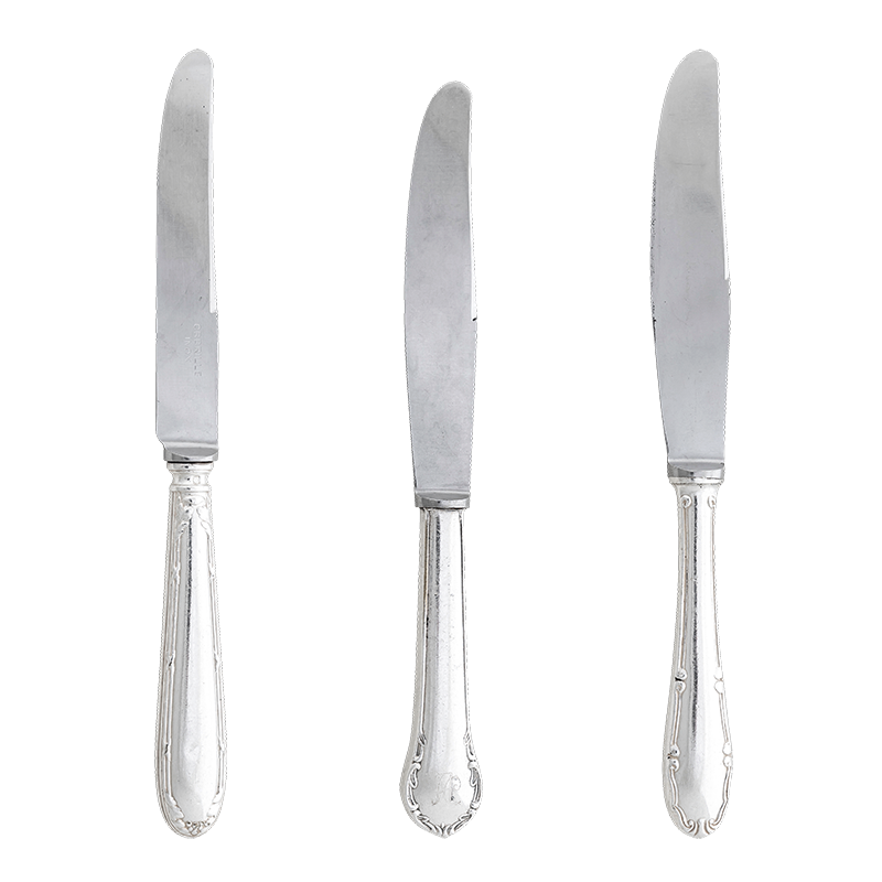 Ce couteau à entremets vintage en argent est parfait pour vos entrées, fromages et desserts. Son design à la fois simple et élégant sera idéal pour peaufiner votre table. Nous vous proposons également à la location nos couverts en argent. Produit chiné et livré dépareillé.