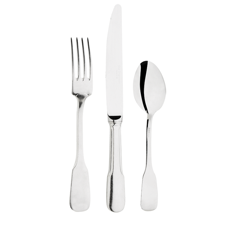 Très élégant et raffiné, le service de couverts Vieux Paris inox mettra en valeur votre table de réception en toute simplicité. 3 modèles de fourchettes, couteaux et cuillères sont disponibles pour s’adapter à tous vos plats et menus.