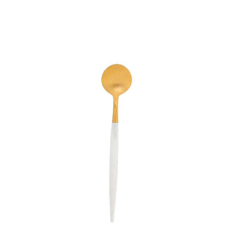 L'élégance et la simplicité de la cuillère à café Cutipol blanc et or réhaussent dîners et réceptions. Découvrez la ligne complète Cutipol blanc et or. Matière: inox peint en doré + résine blanche