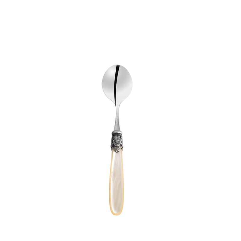 La ligne de couverts Nacre sera l'élément marquant de votre table, par son style très british, son aspect Nacre ivoire et sa bague finement façonnée.