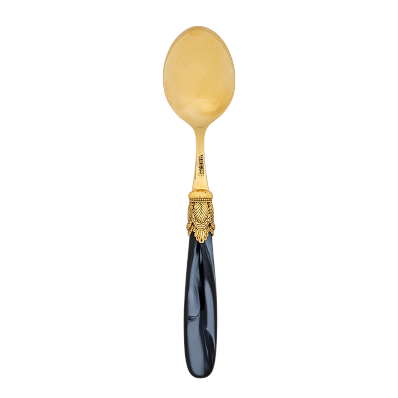 La cuillère de table Nacre noir et or viendra sublimer vos réceptions ou vos dîners aux chandelles. Cette cuillère, à la fois belle à regarder et agréable à utiliser, ne manquera pas d'attirer l'attention de vos convives. De l'en