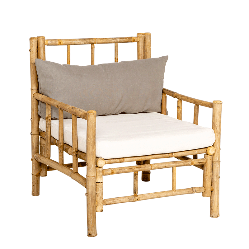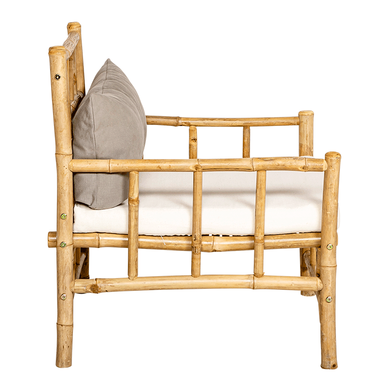 Le fauteuil Bali vous fera rêver avec ses matières naturelles. Son cadre en bambou vous invite au voyage et ses coussins effet lin apportent de la douceur et un confort pour l'assise. Proposez un salon exotique intégral en le complétant avec le canapé rayé gris et la table basse Bali.