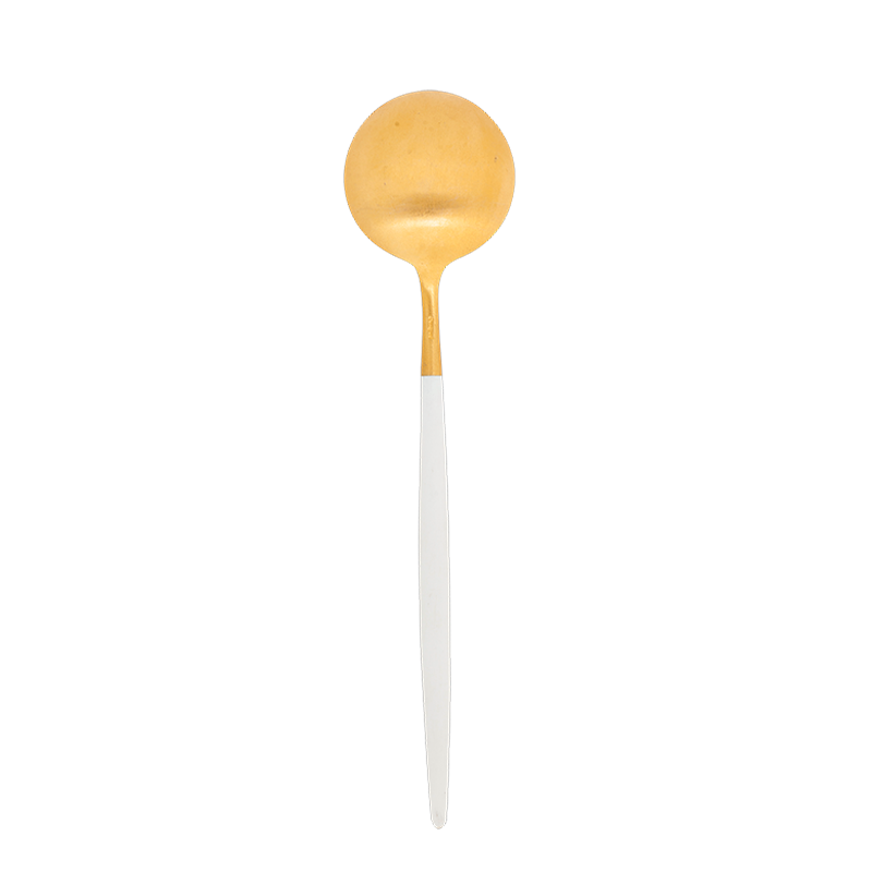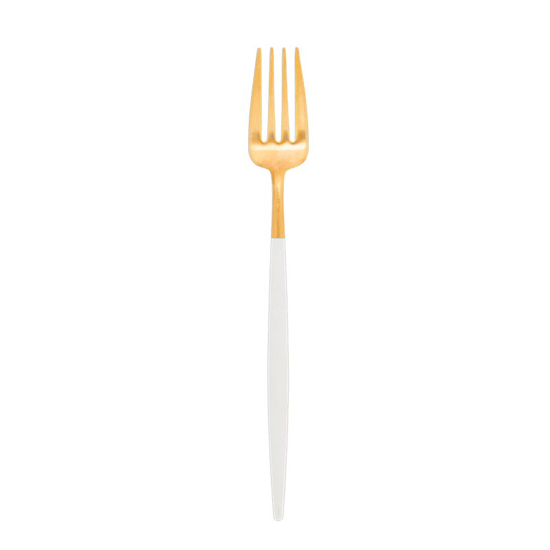 Utilisez la fourchette de service Cutipol blanc et or. Associée avec la cuillère de service, elles sont idéales présentées dans un saladier ou un plateau de service. Matière: inox peint en doré + résine blanche