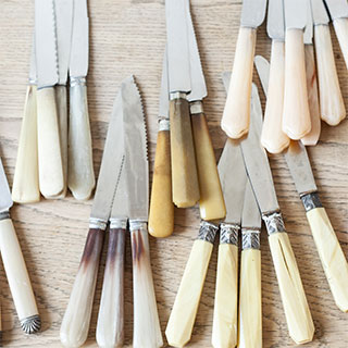 Notre offre de Vaisselle Vintage comprend des couverts en inox et en argent, tous chinés en brocante, spécialement pour vous.