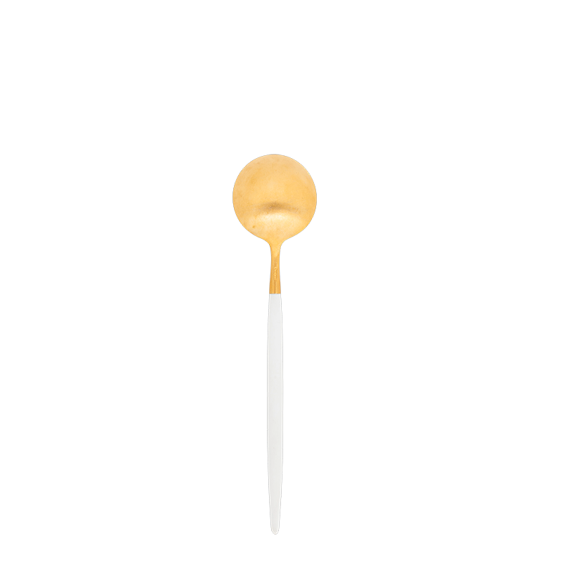 Les couverts Cutipol blanc et doré, avec leur forme fine et élancée, ajoutent une touche de grâce. Leur design épuré et leur finition dorée brillante complètent parfaitement l'esthétique de la table.