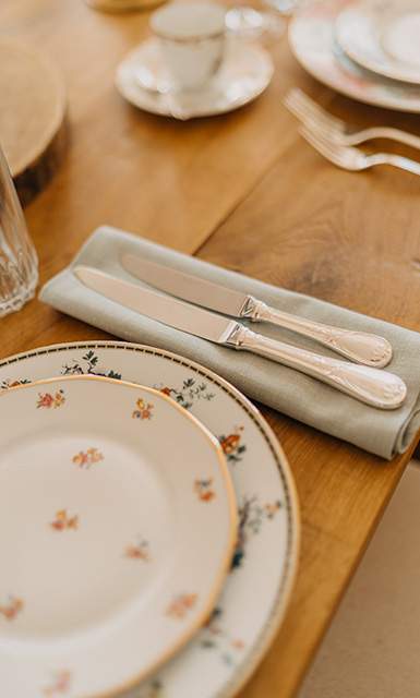 Pour vos déjeuners et dîners, choisissez cette inspiration qui mélange l'Art de la Table vintage avec la table Nature en chêne et les chaises Saint-Rémy. Un mix and match très tendance !