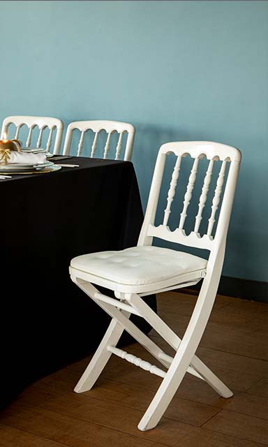 Le blanc des chaises Napoléon blanches rappelle quant à lui la couleur des toits en cette période enchanteresse de l’année.
