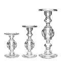 LocationLot de 3 bougeoirs en verre H 22 cm - 29,9 cm - 34,5 cm