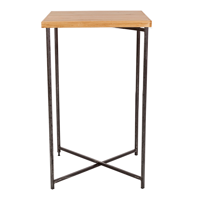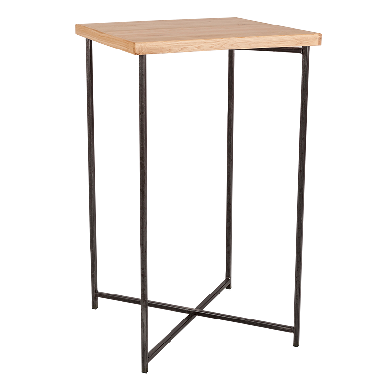 Table haute croisée acier plateau en chêne 65 x 65 cm H 110 cm au design tendance peut être utilisé pour former un buffet ou en tant que mange-debout. Elle peut se mixer avec d'autres coloris de plateaux ou de pieds.