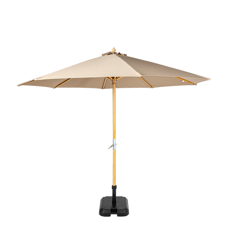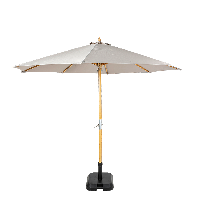 Ce parasol Louisiane taupe 300 x 300 cm comprend un socle en granit Ø 50 cm. Le socle étant large, il est préférable d'installer le parasol à côté d'une table.
