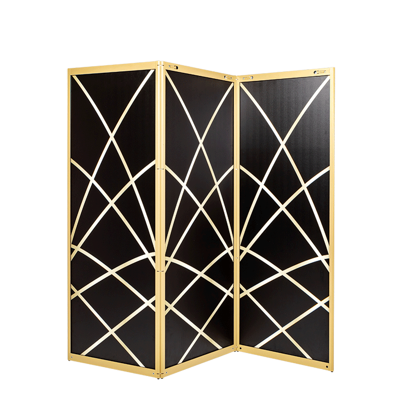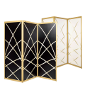 Lors de vos événements d'entreprise, créez des espaces sur mesure avec le paravent Beverly blanc et noir. Les 3 vantaux se parent de bandes dorées et stylisées. Recto noir et doré, verso blanc et doré, choisissez votre côté. Ce paravent, création de la Maison Options, reprend le design des chaises Beverly. Dimensions : 65 cm x 3 - H 186 cm