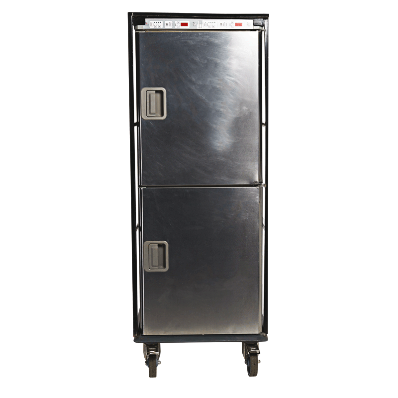 Idéal pour le maintien en température - 2 portes/2 enceintes avec régulations indépendantes - 1x10 + 1x8 rails de guidage espacés de 7,1cm - Thermostat de 65° à 85° - Humidification possible via réservoir d'eau intégré.