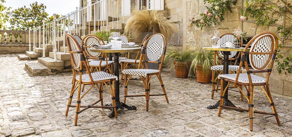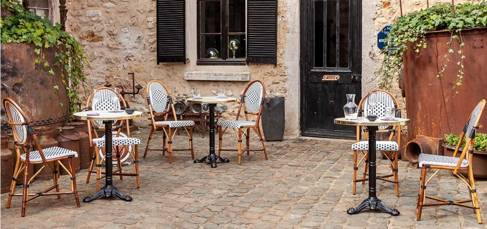 Convivialité et partage seront de mise lors de vos événements en recréant une ambiance bistrot avec l’authentique table de bistrot et son pied en laiton, son plateau en marbre et son cerclage en laiton doré. A la fois vintage et tendance. Pour un total look bistrot vintage garantie avec les chaises St-Rémy.
