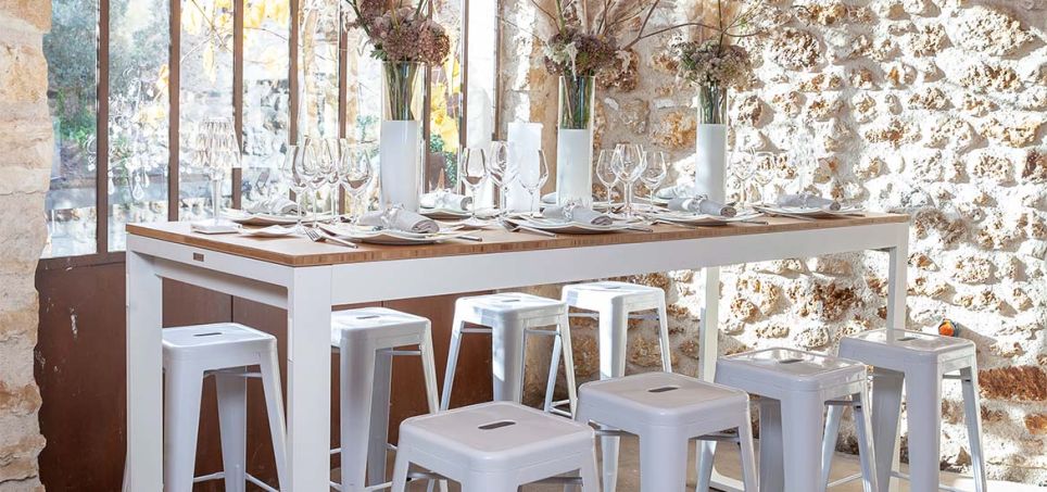 LocationTable haute blanche plateau nature 80 x 230 cm H 110 cm