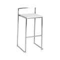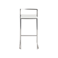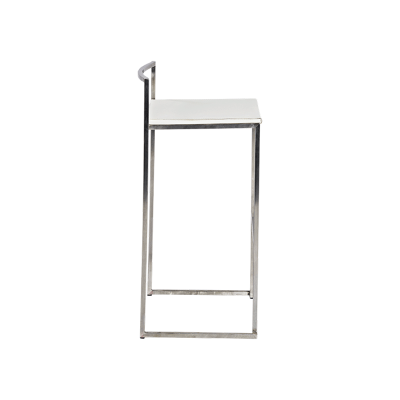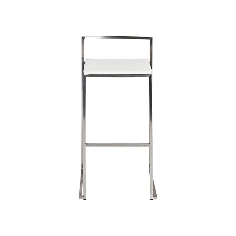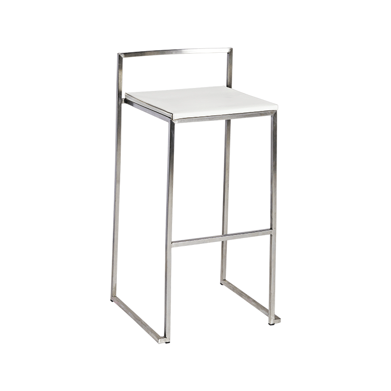 Tabouret en aluminium brossé - Assise en cuir blanc - Empilable