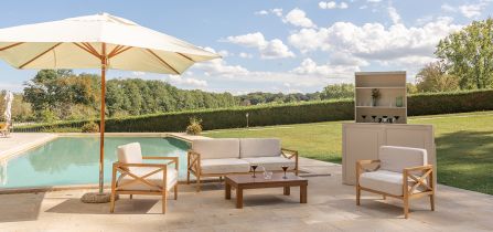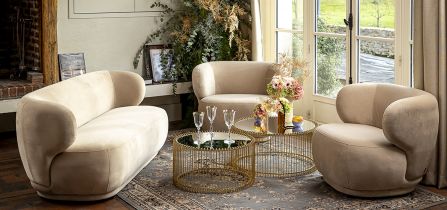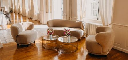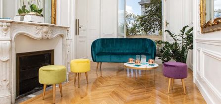 Le canapé, les fauteuils et les poufs en velours Juliette, aux nuances éclatantes, invitent à la détente et à la relaxation dans un cadre élégant et sophistiqué. Les canapés, moelleux et accueillants, permettront à vos convives de s'installer dans un cocon de douceur. Leur matière en velours apporte une touche de chaleur et de dynamisme à l'espace, créant une ambiance joyeuse qui invite à la fête. La présence de poufs permet à chacun de trouver sa place et de profiter pleinement de cette atmosphère décontractée. La table basse en métal doré Filor complète l'ensemble, offrant un espace pratique pour poser boissons et collations.