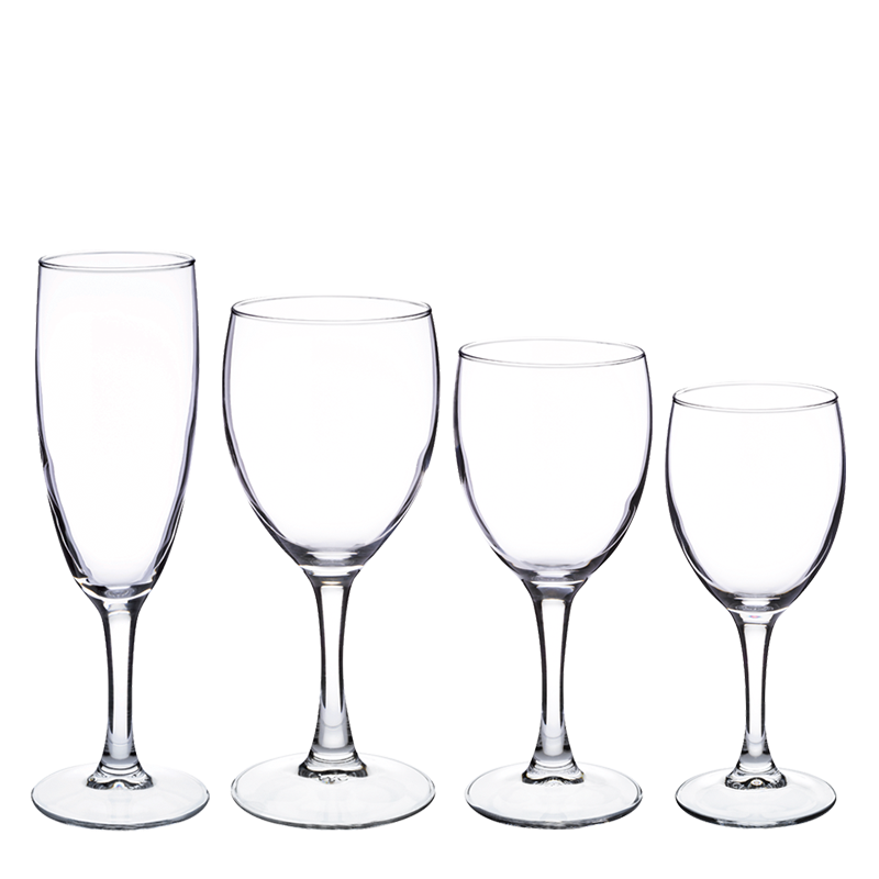La ligne de verres Elégance se décline en 4 modèles de verres à eau, verres à vin et flûte à champagne.